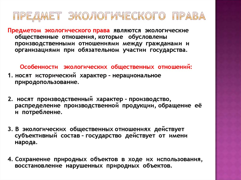 Предметом экологического права являются экологическиеобщественные отношения, которые обусловлены