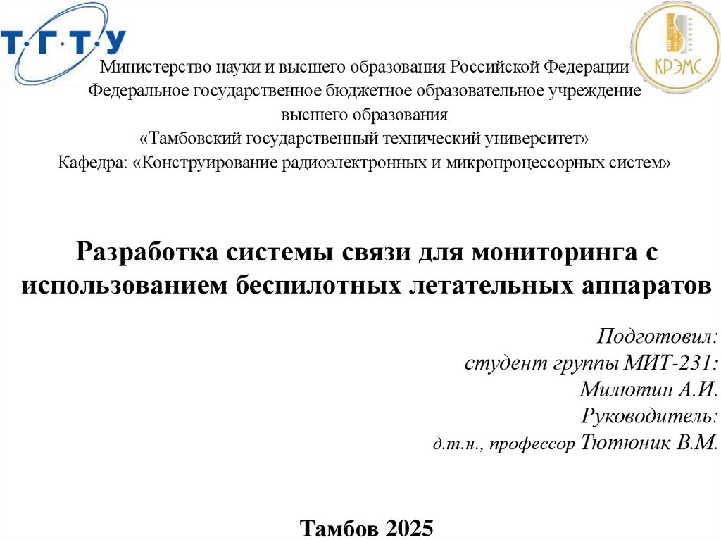 «Тамбовский государственный технический университет»