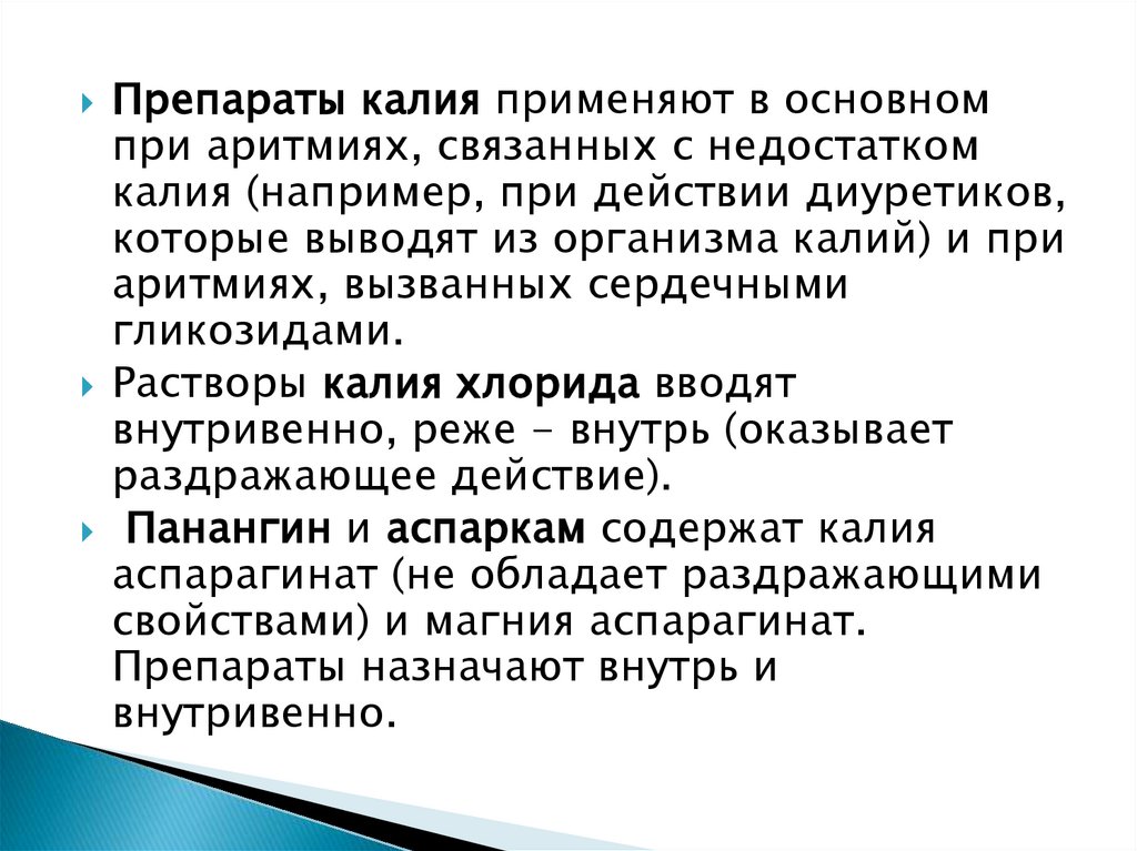 Панангин, аспаркам (содержат калия