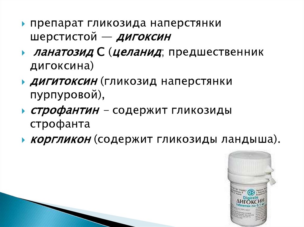 препарат гликозида наперстянкишерстистой — дигоксин