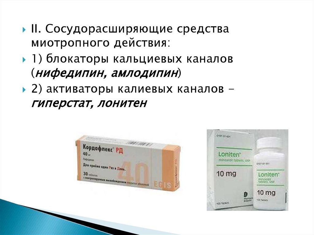 расширяет мозговые, почечные сосуды.