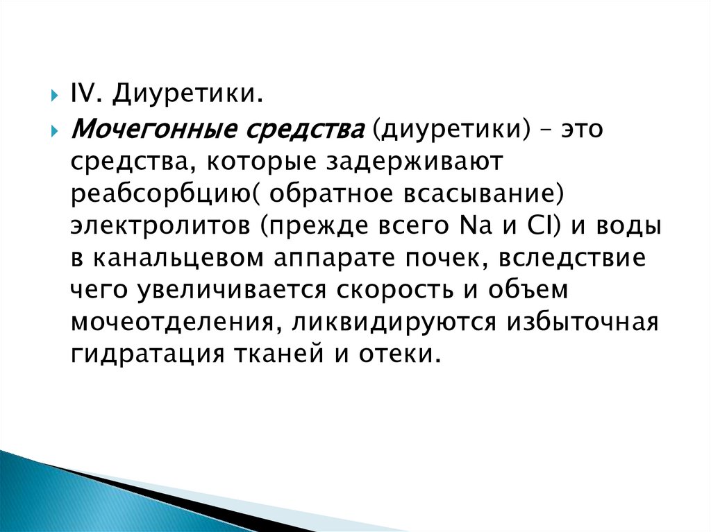 действием, не дают профузного диуреза,