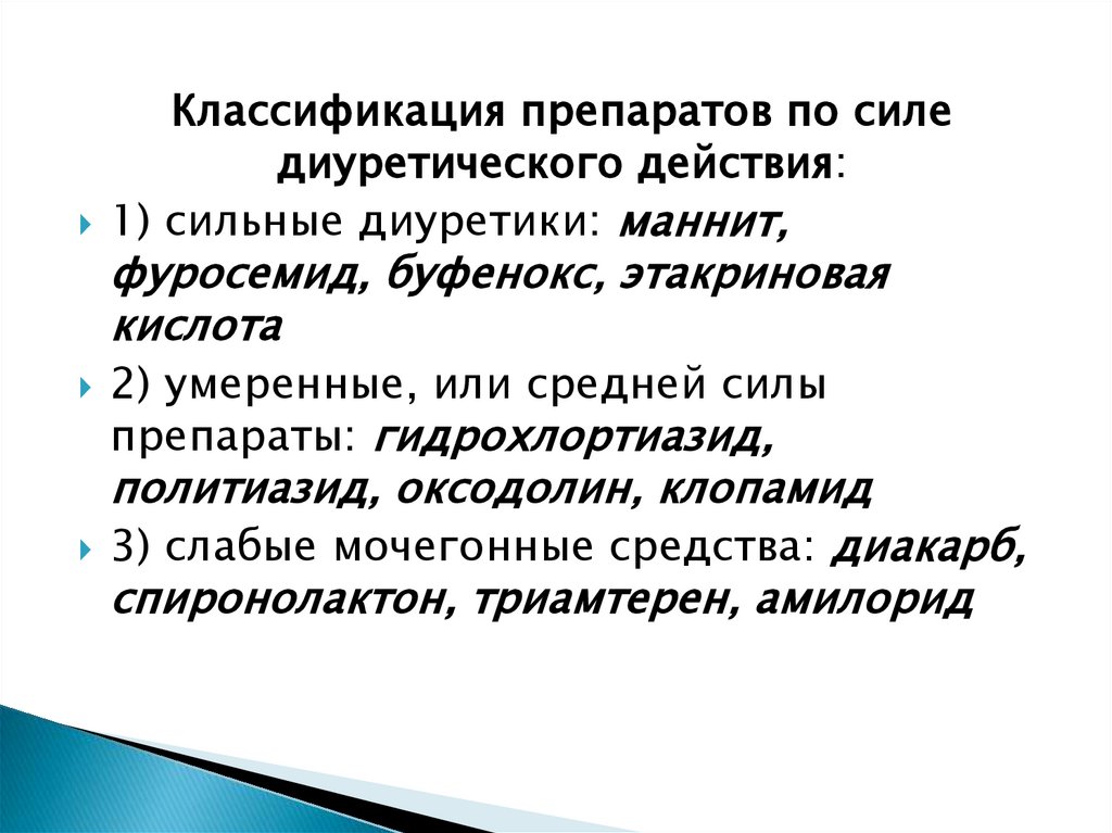 диуретиков широкого и длительного