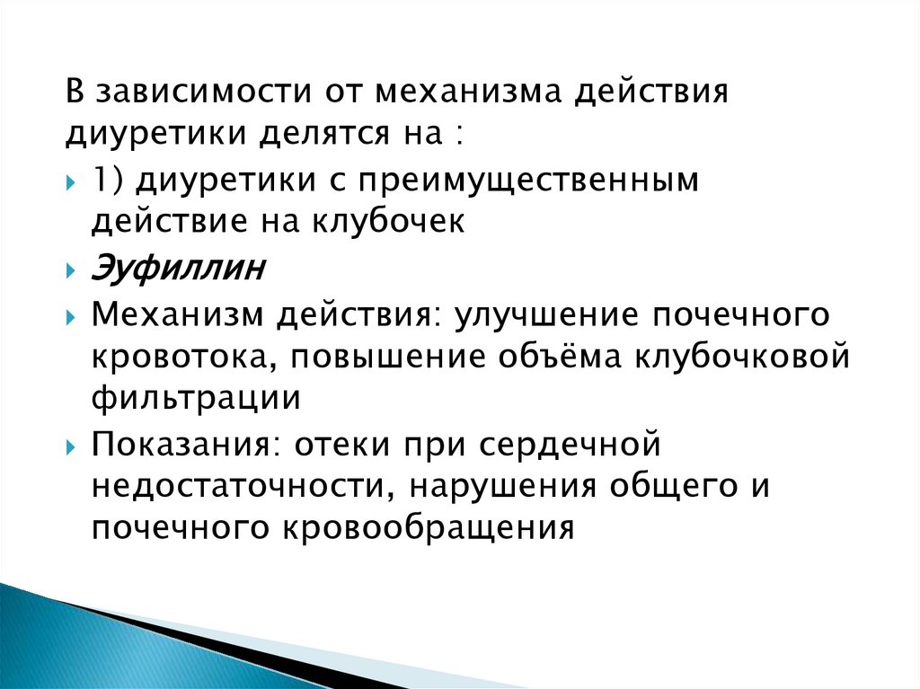 По своему механизму действия диуретики