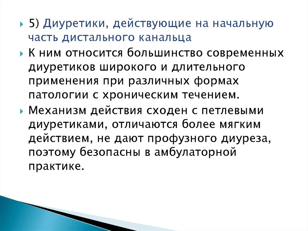 5) Диуретики, действующие на начальнуючасть дистального канальца