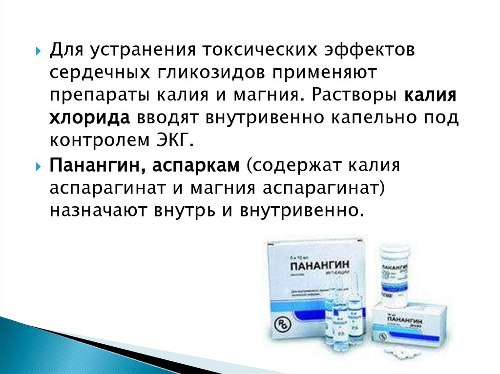 Для устранения токсических эффектовсердечных гликозидов применяют