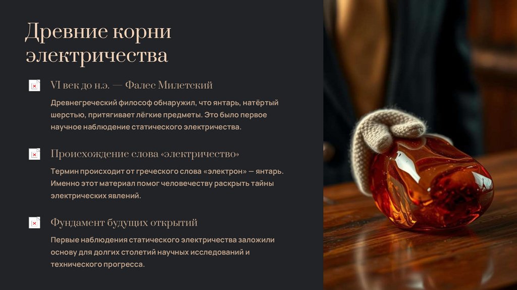 Фалес Милетский и янтарь — начало тысячелетнего пути к пониманию