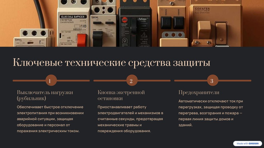 средств для предотвращения поражения электрическим током и других