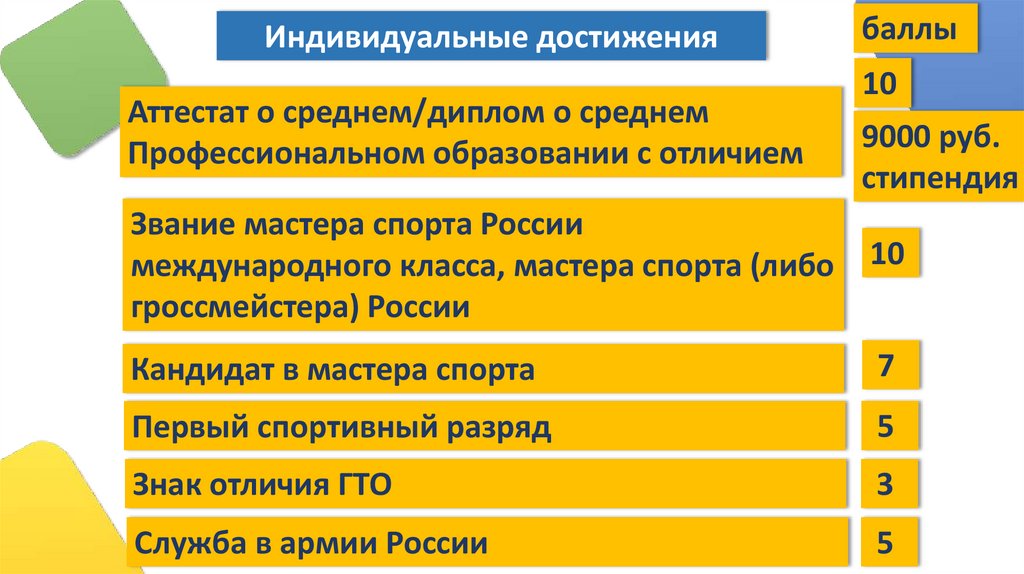 Индивидуальные достиженияАттестат о среднем/диплом о среднем
