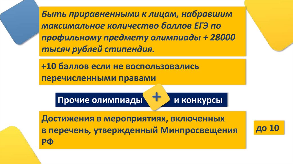 Быть приравненными к лицам, набравшиммаксимальное количество баллов ЕГЭ по