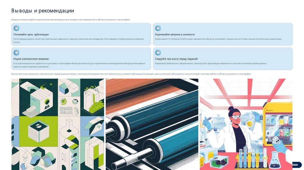 В ы воды и рекомендацииСводка ключевых идей и практические рекомендации для авторов и исследователей в области упаковки и полиграфии.