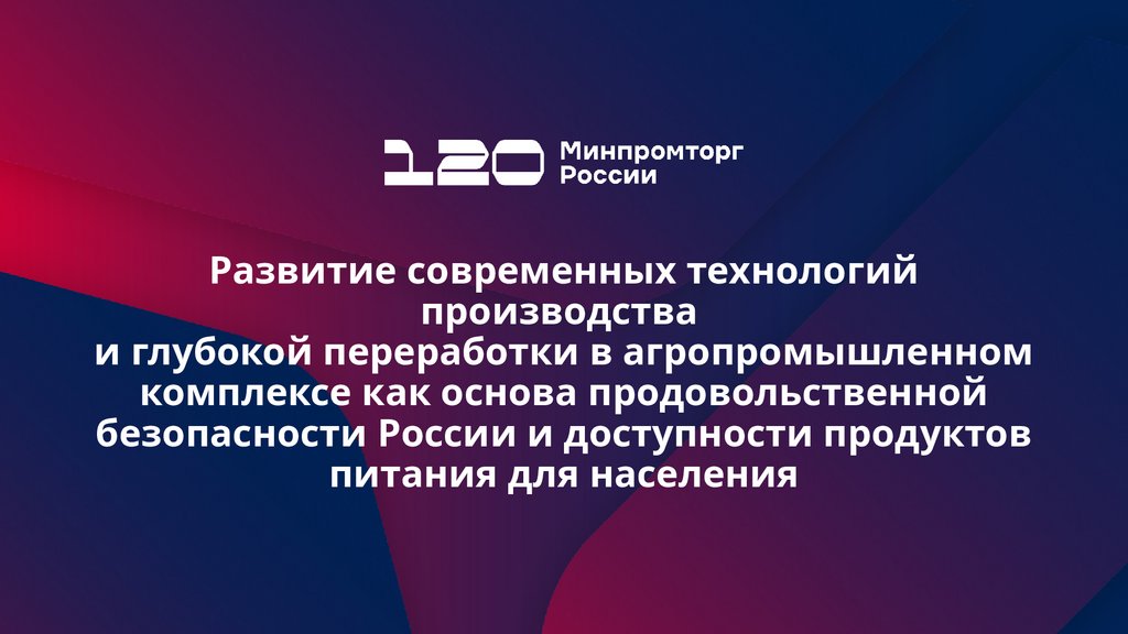 1. Развитие современных технологий производства и глубокой переработки в агропромышленном комплексе как основа продовольственной