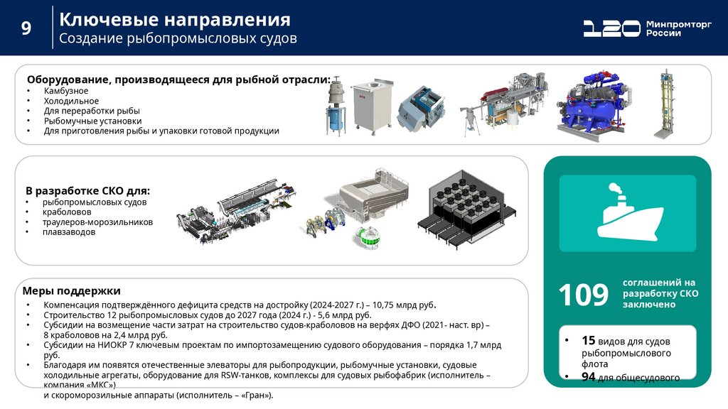Строительство 12 рыбопромысловых судов до 2027 года (2024 г.) - 5,6 млрд руб.