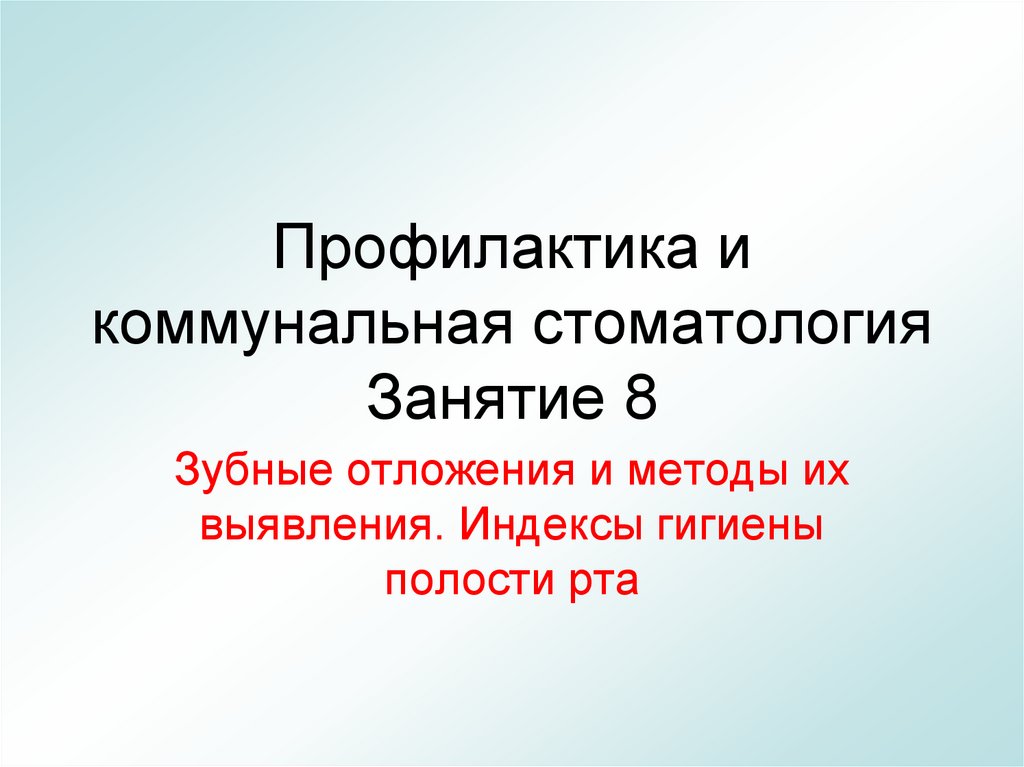 1. Профилактика и коммунальная стоматология Занятие 8