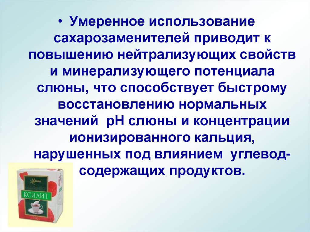 60. Естественные сахарозаменители незначительно влияют на рН слюны