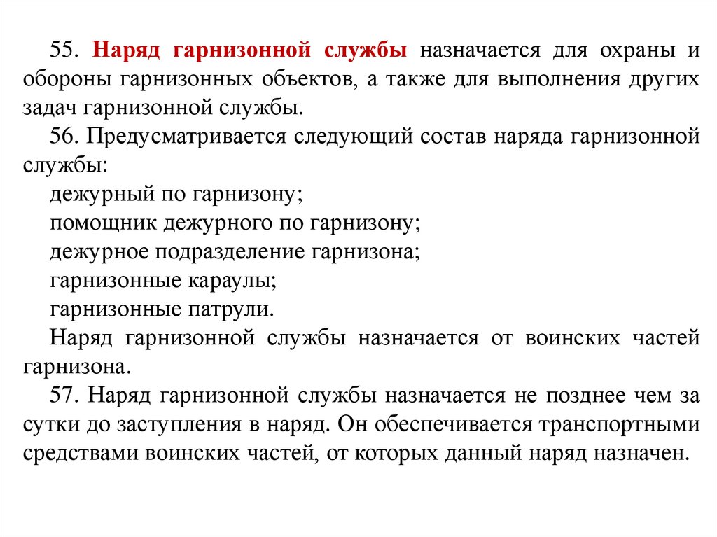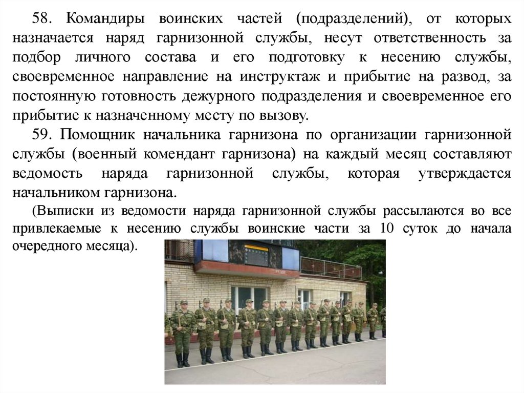 гарнизона). Дежурному по гарнизону подчиняется весь наряд
