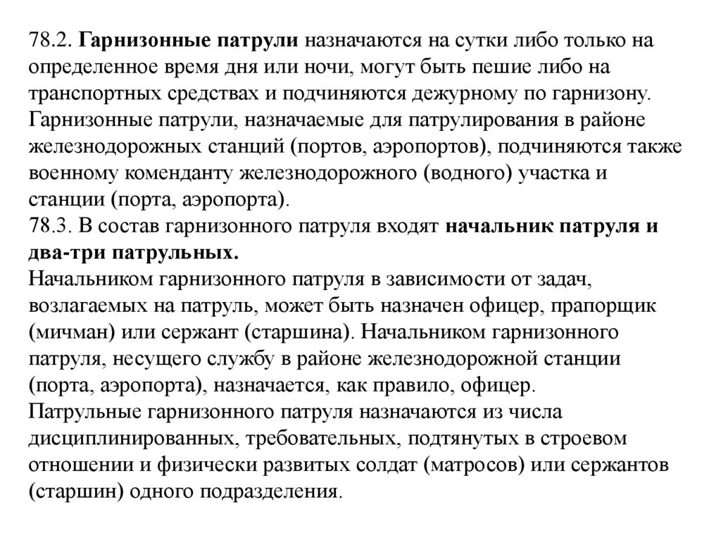 78.3. В состав гарнизонного патруля входят начальник патруля и