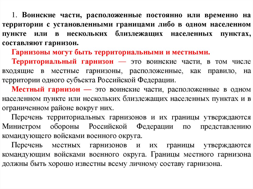 1. Воинские части, расположенные постоянно или временно натерритории с установленными границами либо в одном населенном