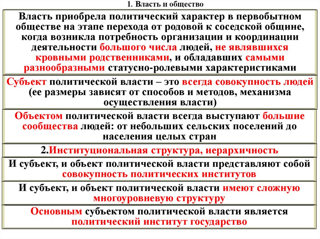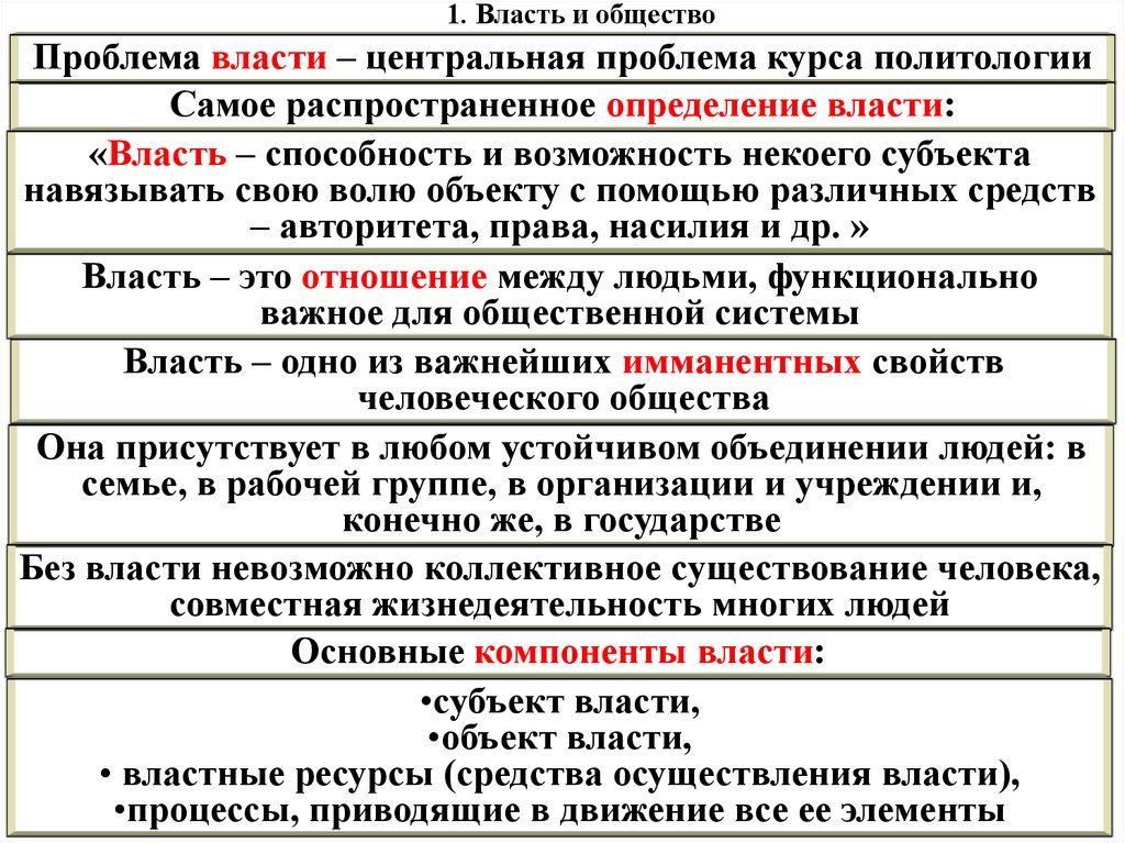 1. Власть и обществоПроблема власти – центральная проблема курса политологии