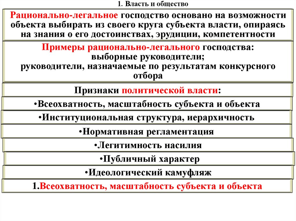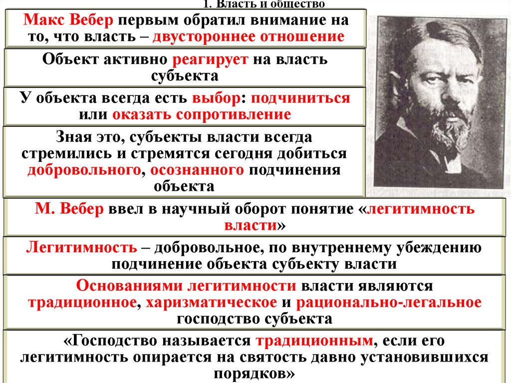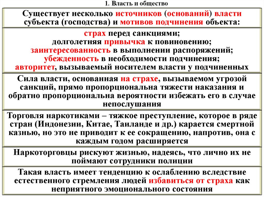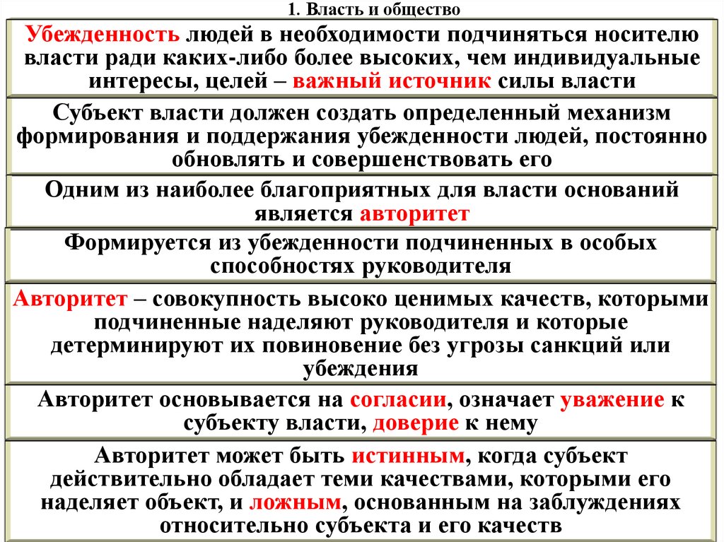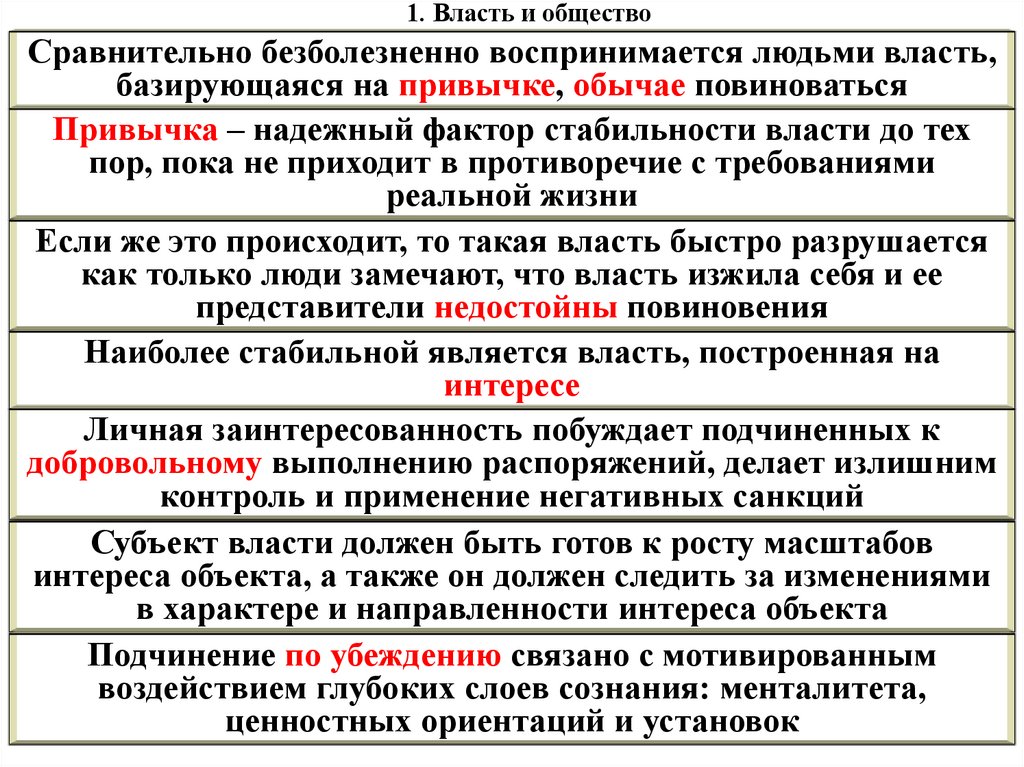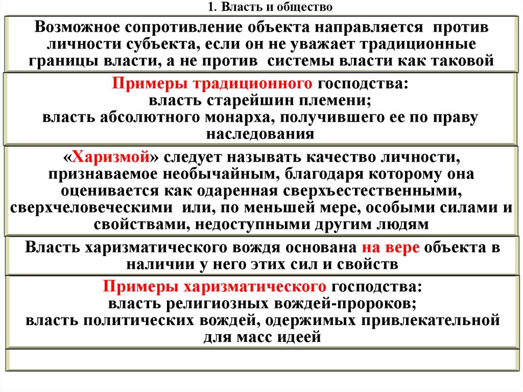 1. Власть и обществоСуществует несколько источников (оснований) власти