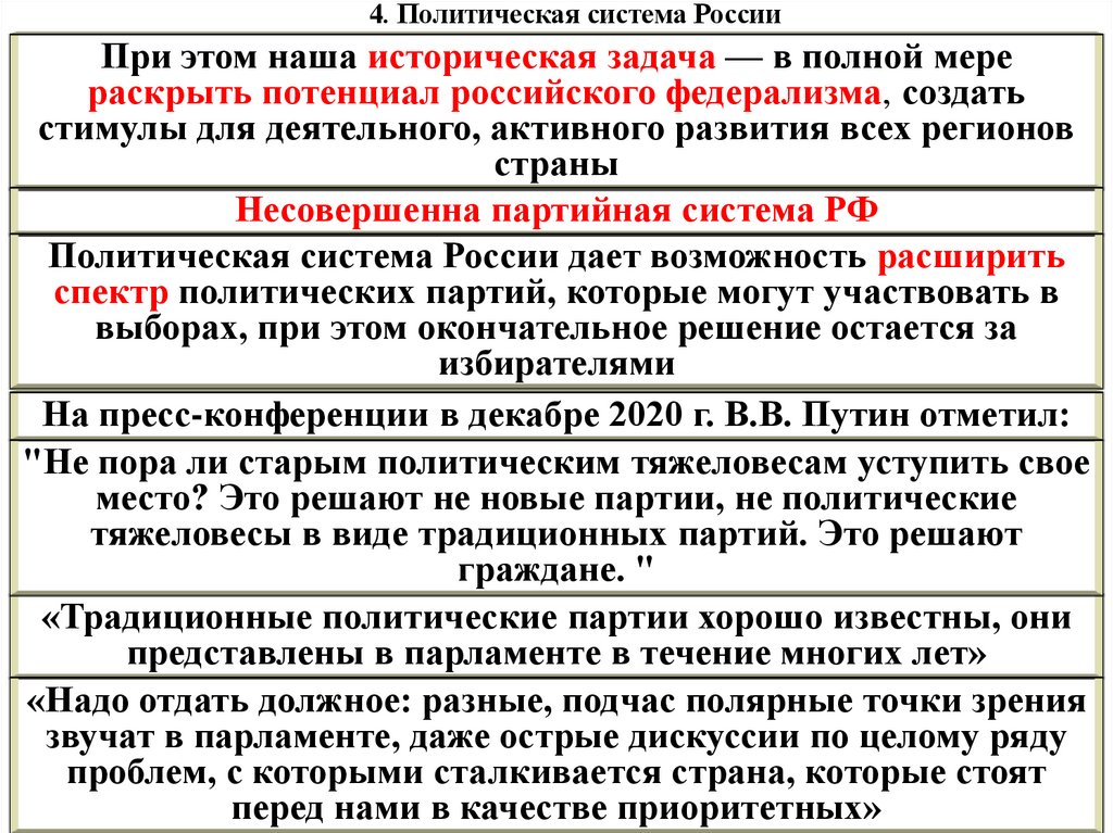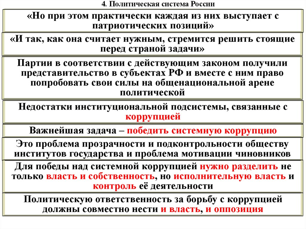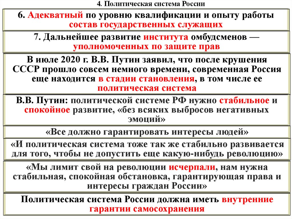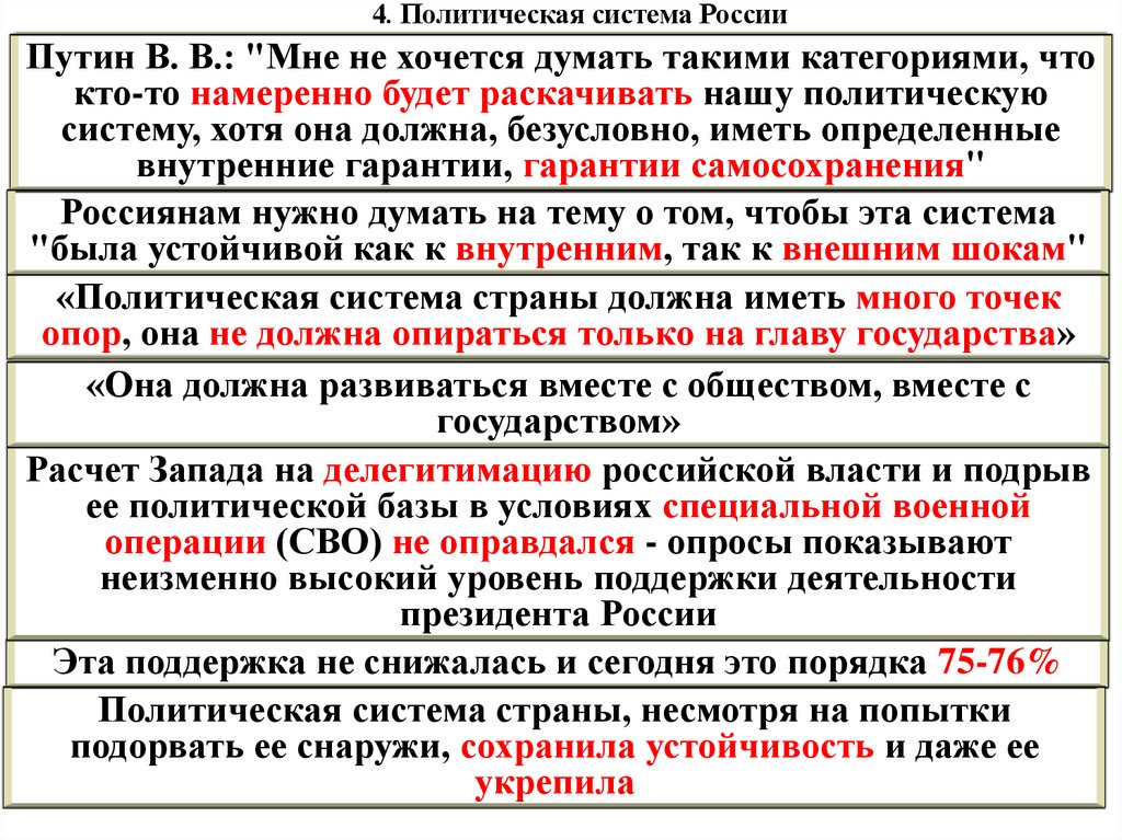 4. Политическая система РоссииПутин В. В.: "Мне не хочется думать такими категориями, что
