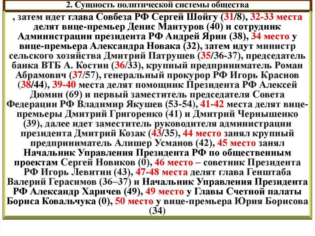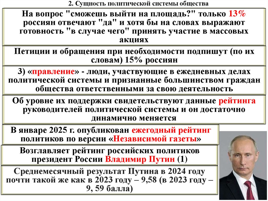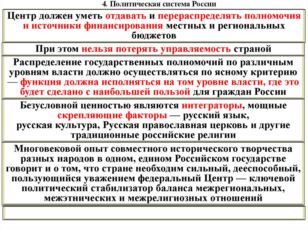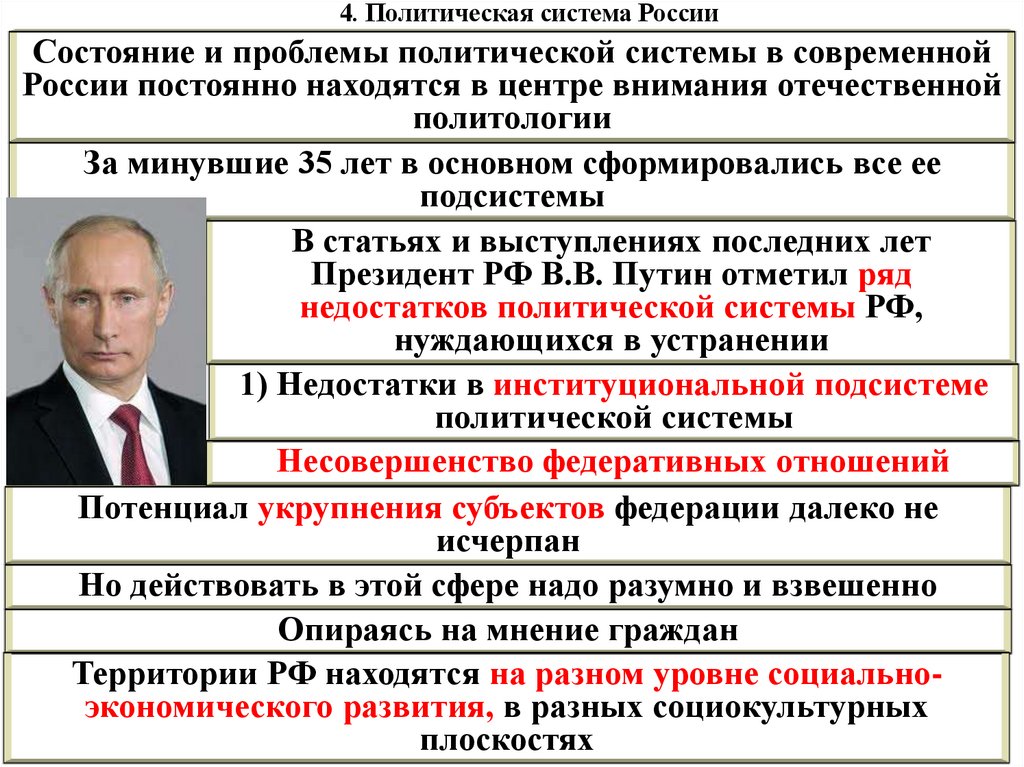 4. Политическая система РоссииПутин В. В.: "Мне не хочется думать такими категориями, что