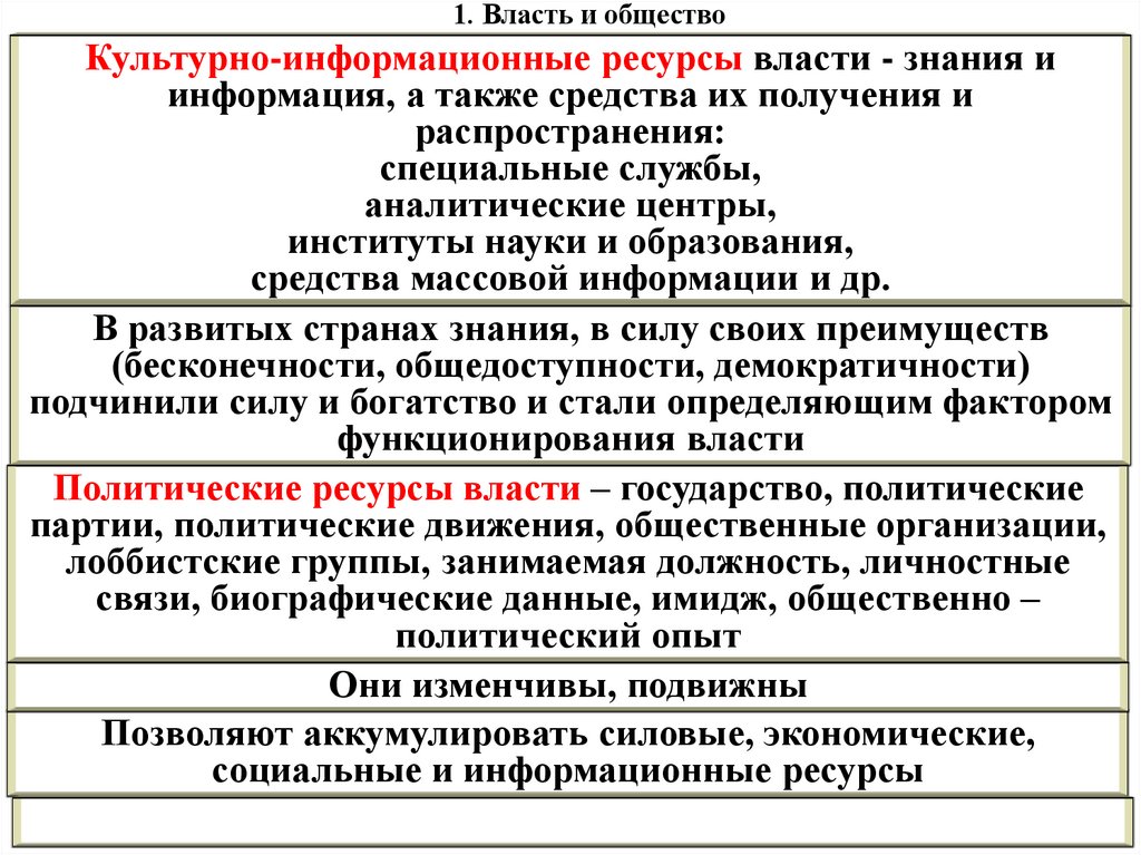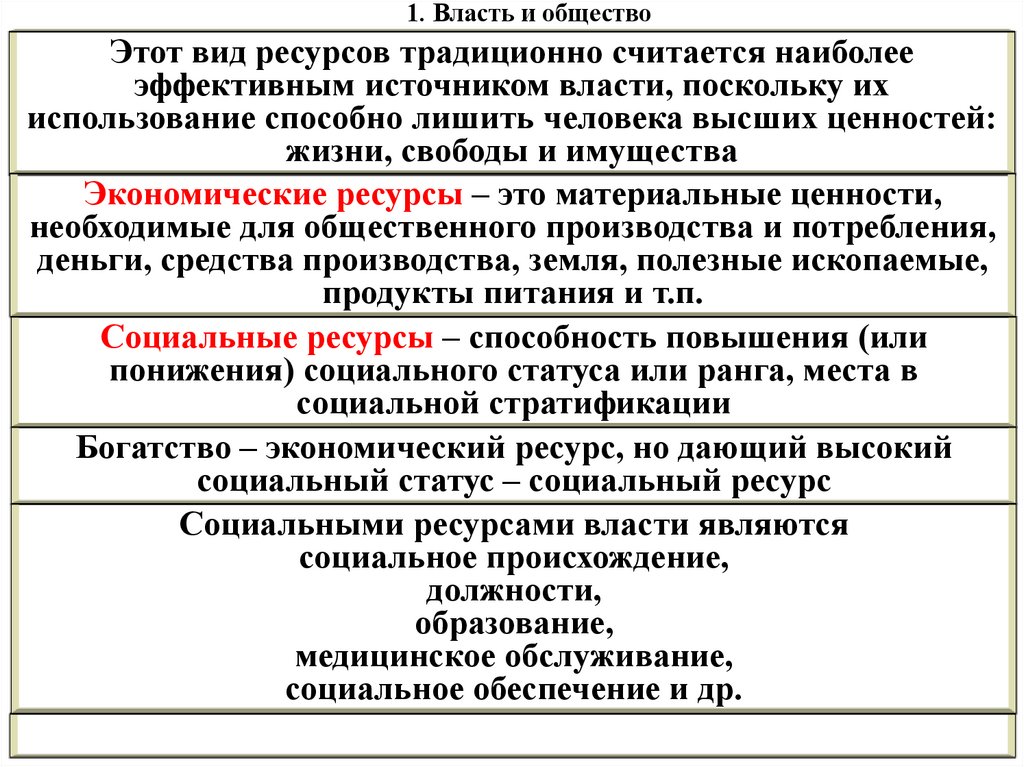 1. Власть и обществоЭтот вид ресурсов традиционно считается наиболее