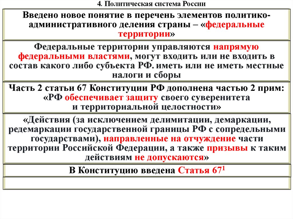 4. Политическая система РоссииДолжны быть четко установлены границы государства,