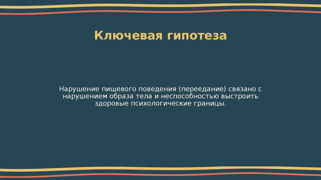 Ключевая гипотезаНарушение пищевого поведения (переедание) связано с
