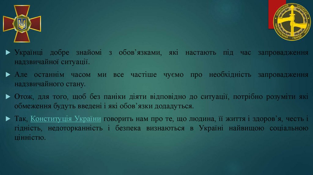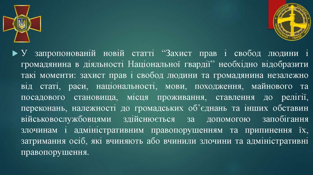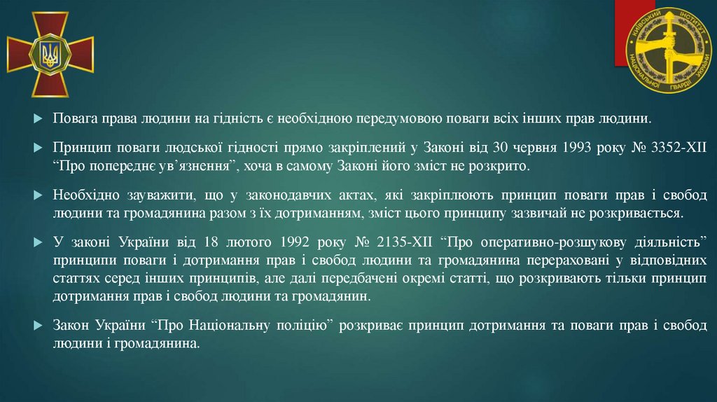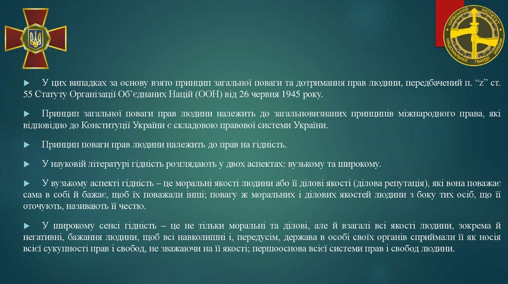 ЗАНЯТТЯ 1: ПРИНЦИПИ ДОТРИМАННЯ ПРАВ ЛЮДИНИ У СФЕРІ БЕЗПЕКИ2. НАВЧАЛЬНІ ПИТАННЯ