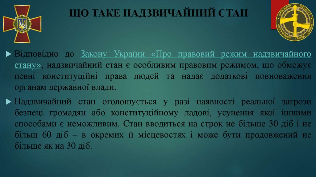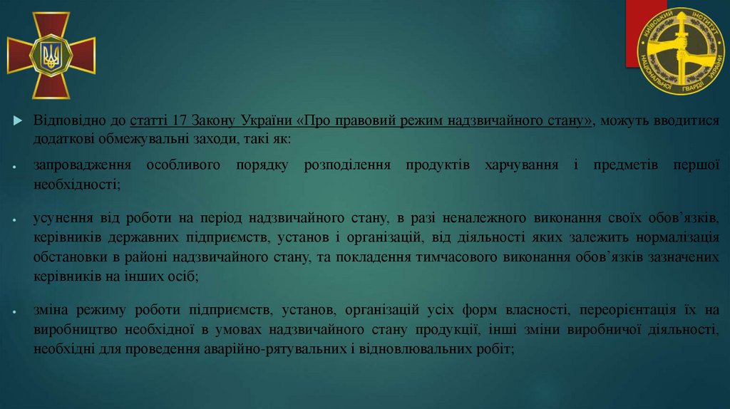 воєнного чи надзвичайного стану за умови попереднього або наступного повного
