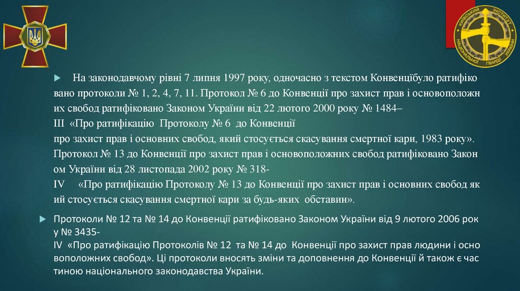 ом України від 28 листопада 2002 року № 318IV «Про ратифікацію Протоколу № 13 до Конвенції про захист прав і основних свобод як