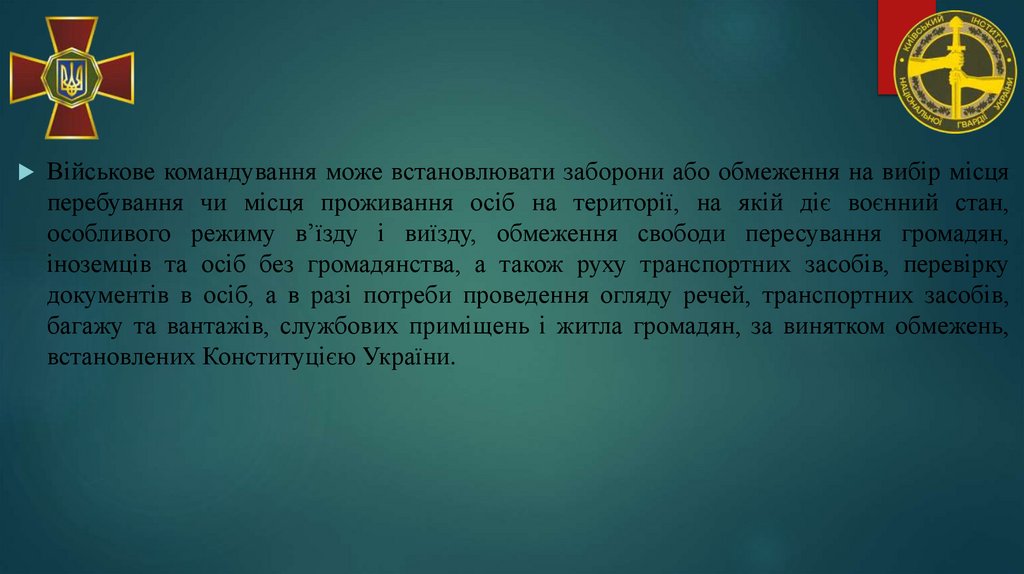 Суспільні роботиНа території, на якій введено воєнний стан, військове командування разом з іншими