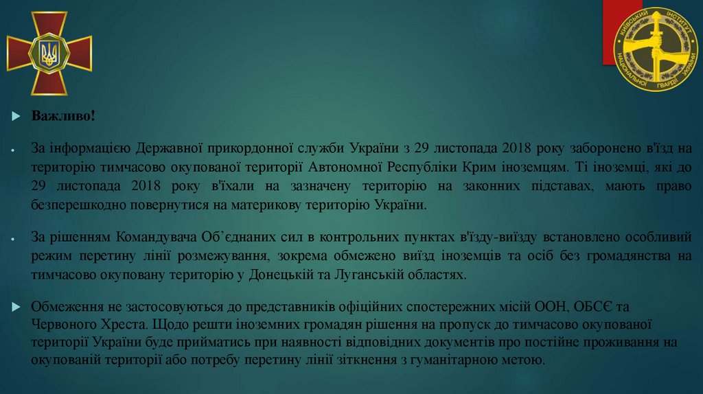 окупованій території або потребу перетину лінії зіткнення з гуманітарною метою.