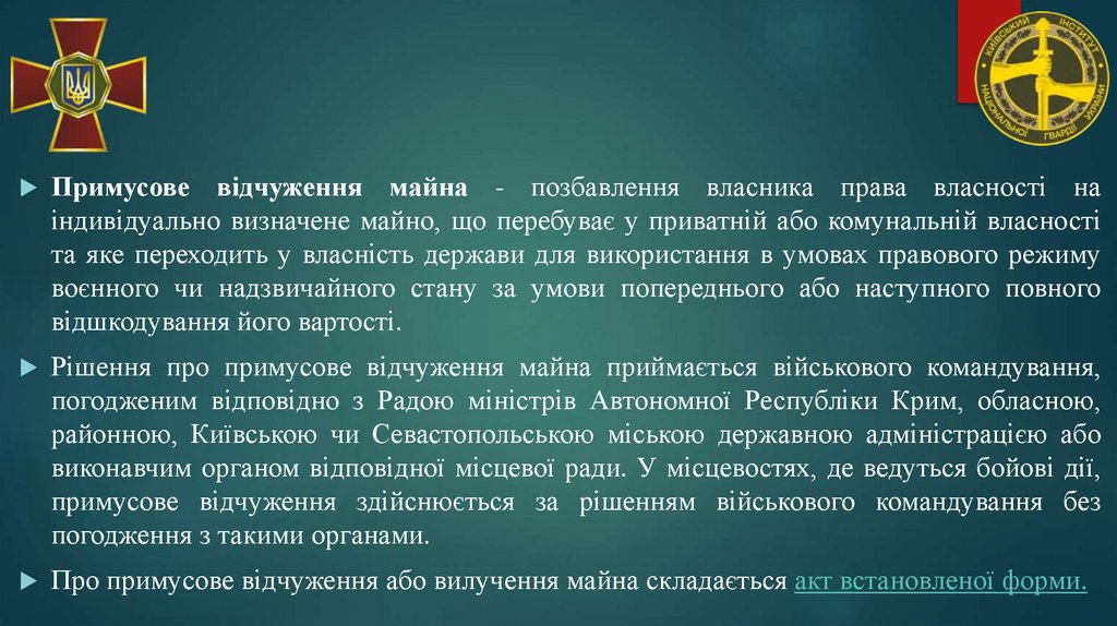 майна в умовах правового режиму воєнного чи надзвичайного стану").