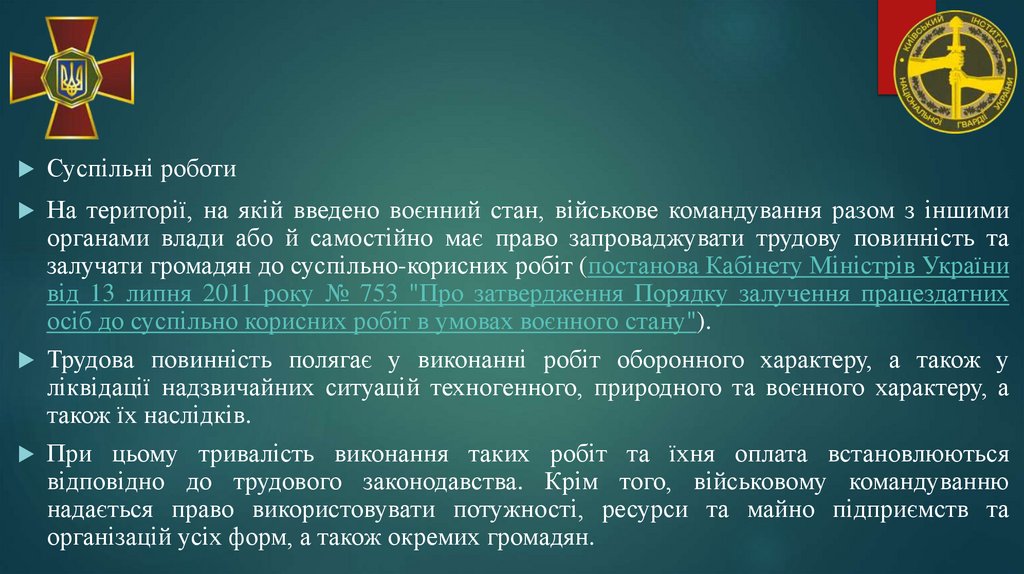 осіб до суспільно корисних робіт в умовах воєнного стану").