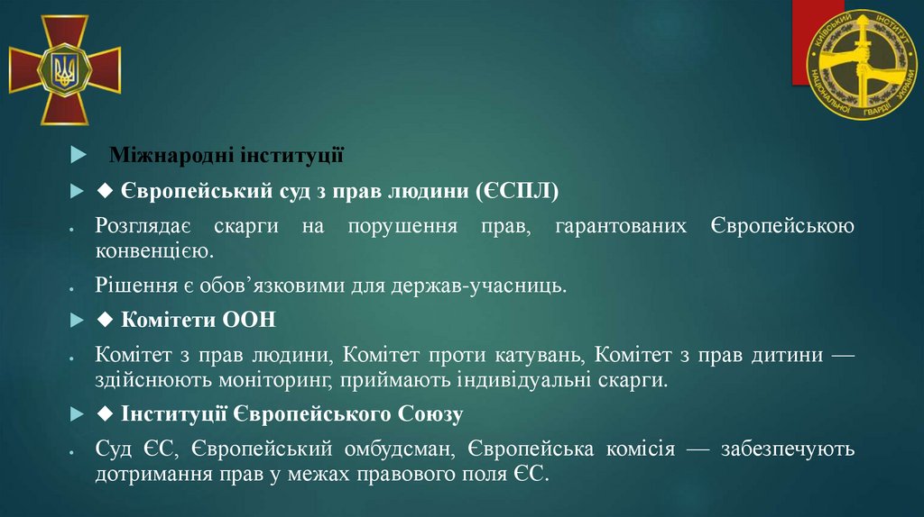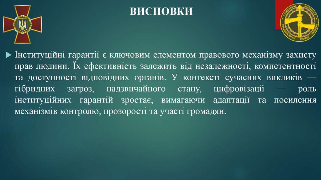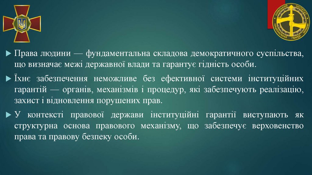 ІНСТИТУЦІЙНІ ГАРАНТІЇ ДОТРИМАННЯ ПРАВЛЮДИНИ.