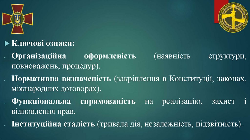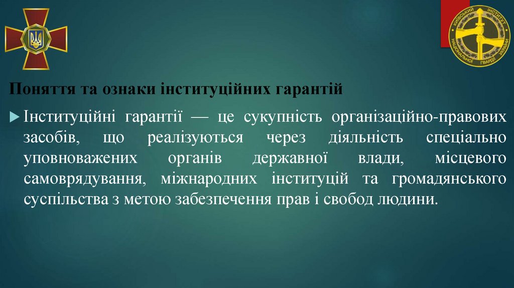 Поняття та ознаки інституційних гарантійІнституційні гарантії — це сукупність організаційно-правових