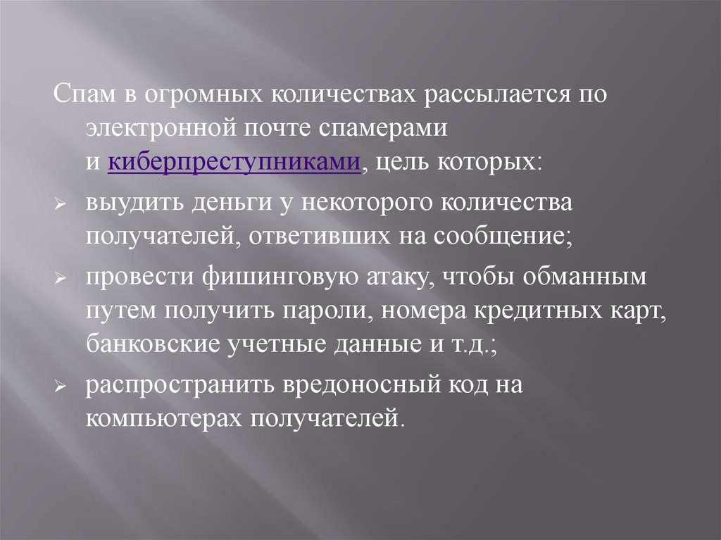 Спам в огромных количествах рассылается поэлектронной почте спамерами
