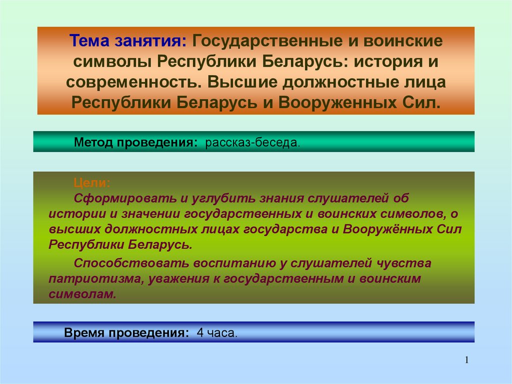 Тема занятия: Государственные и воинскиесимволы Республики Беларусь: история и