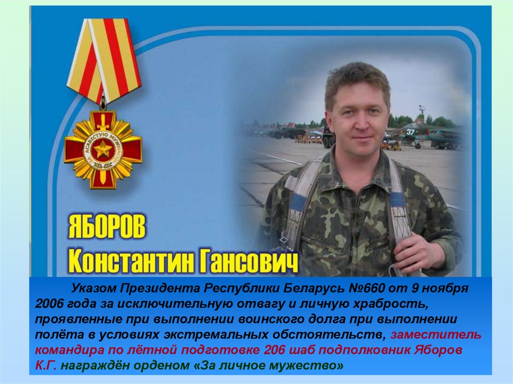 командира по лётной подготовке 206 шаб подполковник Яборов