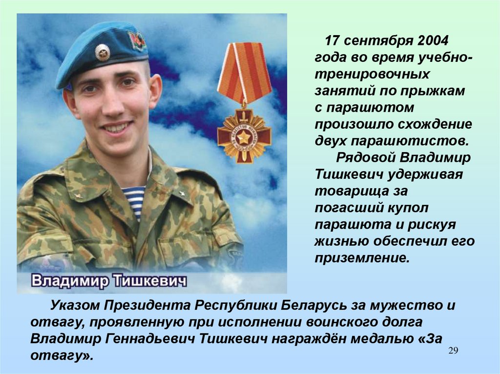 Указом Президента Республики Беларусь №660 от 9 ноября2006 года за исключительную отвагу и личную храбрость,