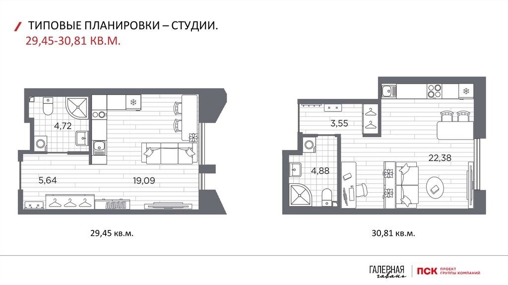 ТИПОВЫЕ ПЛАНИРОВКИ – СТУДИИ.29,45-30,81 КВ.М.