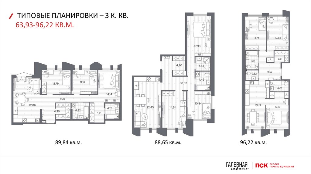 ТИПОВЫЕ ПЛАНИРОВКИ – 3 К. КВ.63,93-96,22 КВ.М.