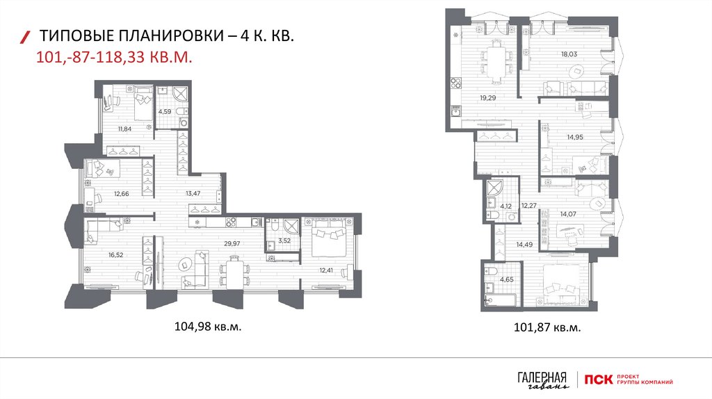 ТИПОВЫЕ ПЛАНИРОВКИ – 4 К. КВ.101,-87-118,33 КВ.М.