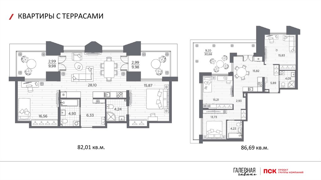 КВАРТИРЫ С ТЕРРАСАМИ82,01 кв.м.