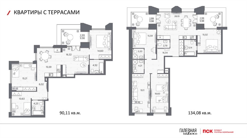 КВАРТИРЫ С ТЕРРАСАМИ90,11 кв.м.