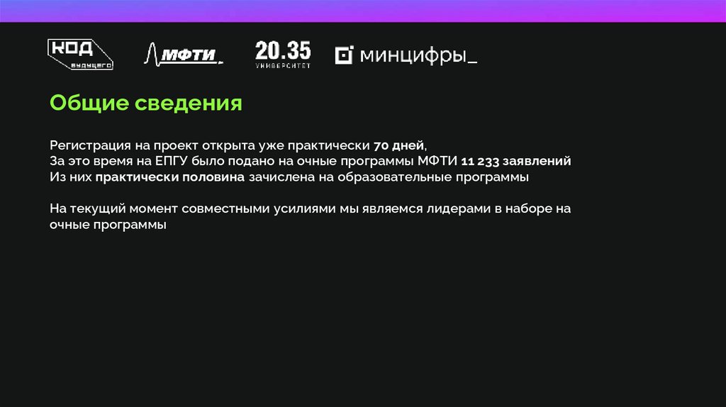 Общие сведенияРегистрация на проект открыта уже практически 70 дней,