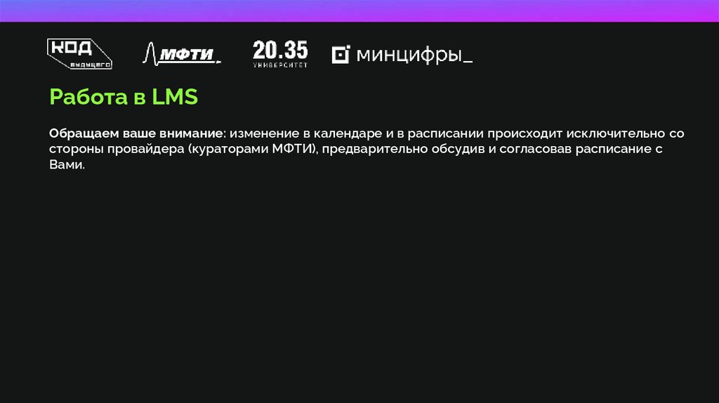 Работа в LMSОбращаем ваше внимание: изменение в календаре и в расписании происходит исключительно со