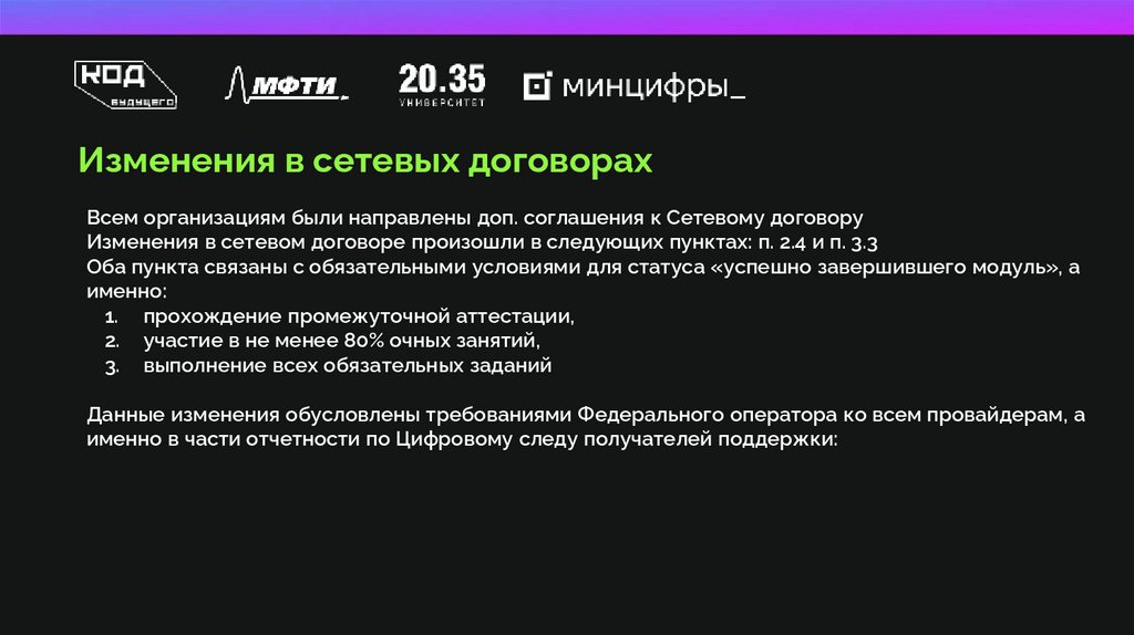 Данные изменения обусловлены требованиями Федерального оператора ко всем провайдерам, а